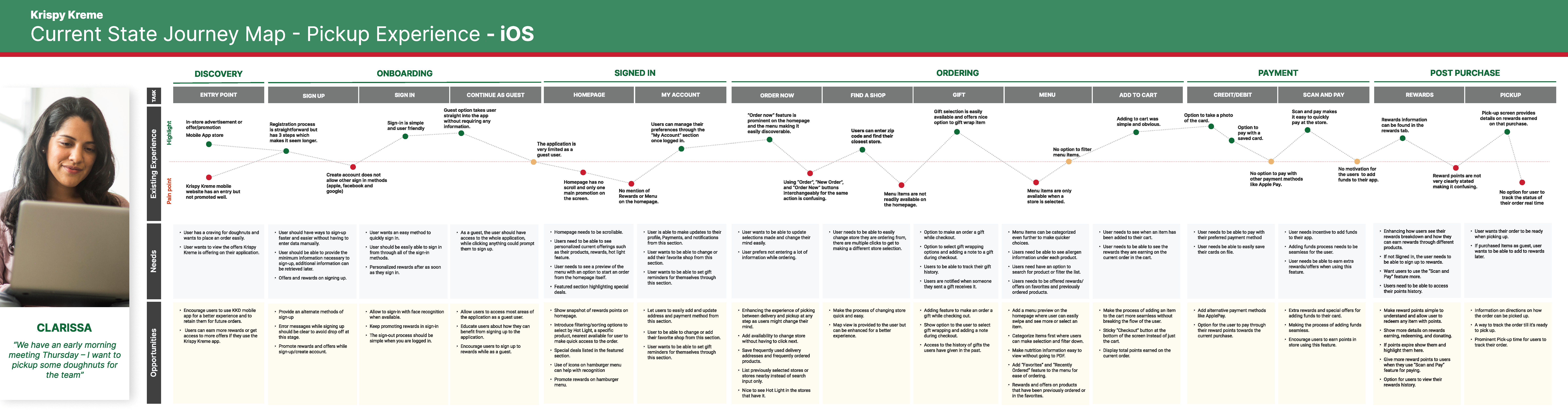Creating a journey map helped us identify current user pain points and uncover opportunities